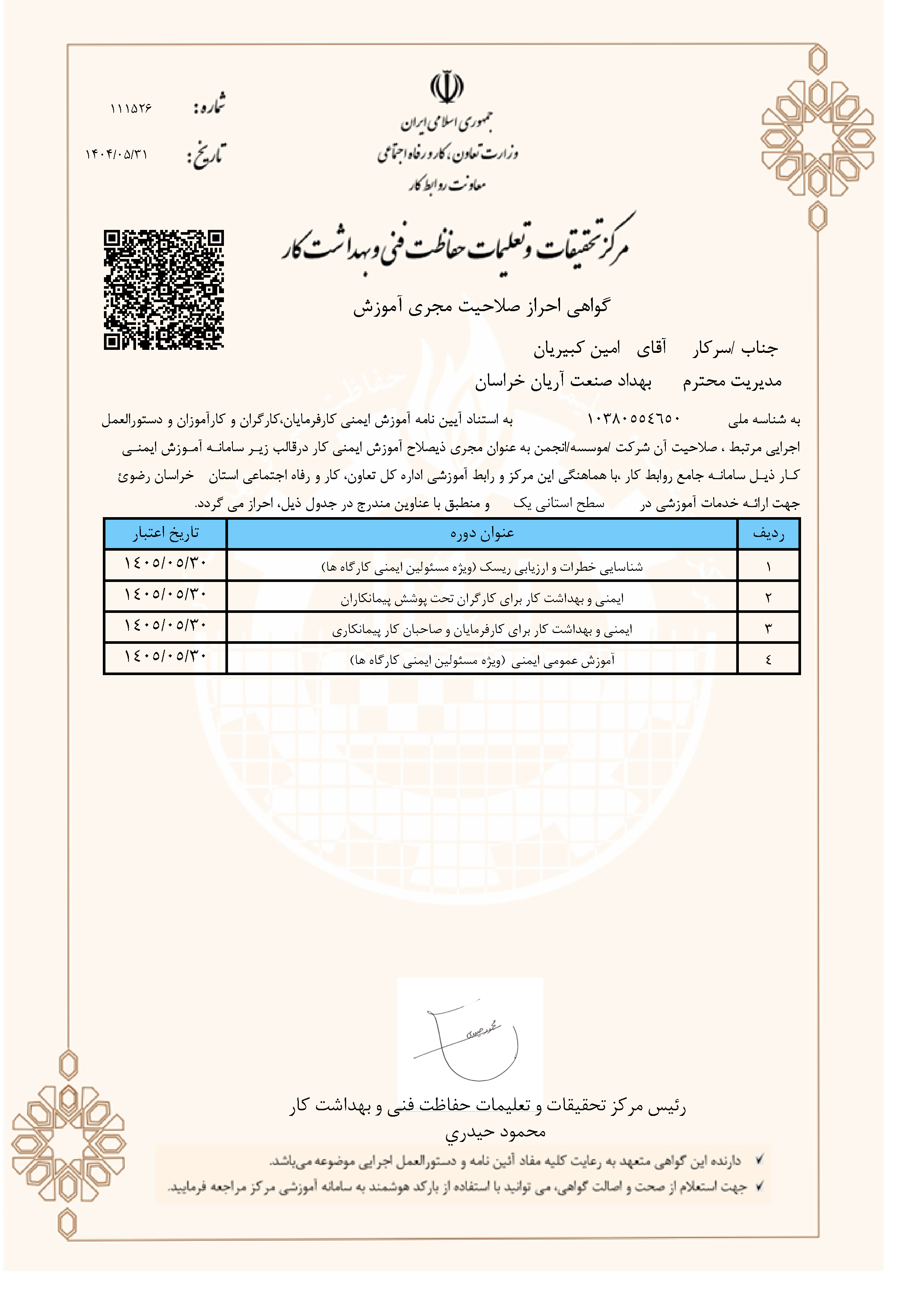 گواهی احراز صلاحیت مجری آموزش اداره کار